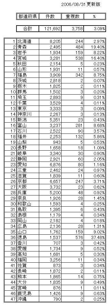 しかし、郵便番号が一意ではないことが判明した。一つの郵便番号で複数の住所を表すのである。しかしそれがお客様が管理する住所とどの程度関係するのかが判らない。一意でない郵便番号が占める割合がどの程度あるのかを調査した。