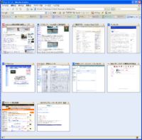 FirefoxのShowcaseでは、デスクトップ上のウィンドウではなくFirefox内のタブをサムネイル表示し目的のタブに移動することを可能にしている。インストールして使用させていただいています。