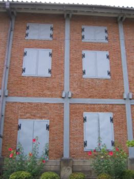 木骨レンガ造りという工法らしく、ここは明治5年らしいが、もう少し後に作られている北海道・小樽の倉庫群も同じ工法である。似たような景観で懐かしくも感じられる。ウィークデイで昼飯時でもあるので見学者も少ない。リタイアしたらしいご夫婦が二組。デジカメ一眼をぶら下げている。スイスイ見学できて、写真も好きなアングルで撮れる。