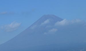 三島・新富士・静岡の間が富士山が見えやすい区間である。今日は見えている。朝のTV番組に映っていた富士山と比べると鮮明さに欠けるが見えている。新幹線のガラス越しであるが写真を撮る。見られないと見たいとの気持ちが強くなっていた。これがずうっと見えていたら顔を上げてチラッと見て、読書したりするのだろう。