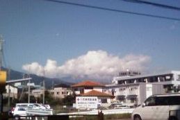 それで近所から出てきたようなおじさんに聞いて指差す方は雲しかない。そうか、雲にまとわりつかれているから富士山が見えなかったのだ。それが上の写真である。青空に雲のかたまり。それが富士山の今日の姿であった。