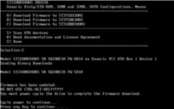 「S」は再度HDDをスキャンさせる。「R」はもう一度ドキュメントを読む。「Z」は終了させる。それで「Selection」に「A」(FirmwareをアップデートさせるHDDが表示されている英字)を入力すると、Firmwareのアップデートが開始される。20~30秒程度だろうか。1分はかからない時間で終了する。