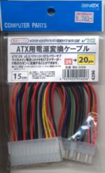 20ピンの電源ユニットのコネクタを24ピンに変換するケーブルを購入したことがあるので、24ピンから20ピンに変換するケーブルがあるのではと検索したら、当然のように販売している。しかし近くの量販店を廻ってみたがそのようなパーツは販売していない。やはり秋葉原まで行かなくてはならない。通販では送料と振込料を加算したら電車賃の方が安い。