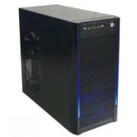 電源ランプはケース前面の両端でライン状にブルーLEDが点灯する。上方に向かって輝度が低下するように作られている。派手な感覚ではない落ち着いたブルーLEDである。HDDアクセスランプもブルーLEDになっている。黒にブルーLEDはよく似合う。低価格のケースにしてはフロント・リアにファンが搭載されている。フロントベゼルには防塵フィルタが付いている。全てのベイはスライドストッパーでネジを使用しなくても装着出来る。ケース外板は手回しネジである。
