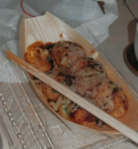 ホテルに持ち帰り、たこ焼きを食べる。多くの店のたこ焼きを食べた経験はないが、一個は大きめで中がフワフワ。たこは大きめに感じた。写真は持ち帰ったからか、少し潰れている感じ。