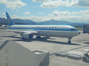 AIR DOはB767-300で機番はJA01HDだった。(写真をクリックすると大きな画像で見られます。)