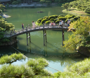 街の中を抜けて「栗林公園」に向かう。「ミシュラン・グリーンガイド」に三つ星で評価されている。四国では道後温泉本館と並ぶ評価である。汗をかきながら北門に到着。「玉藻公園」の入場券を提出すると20%安く「栗林公園」に入場できる事は「玉藻公園」を調べた時に記憶しておいた。