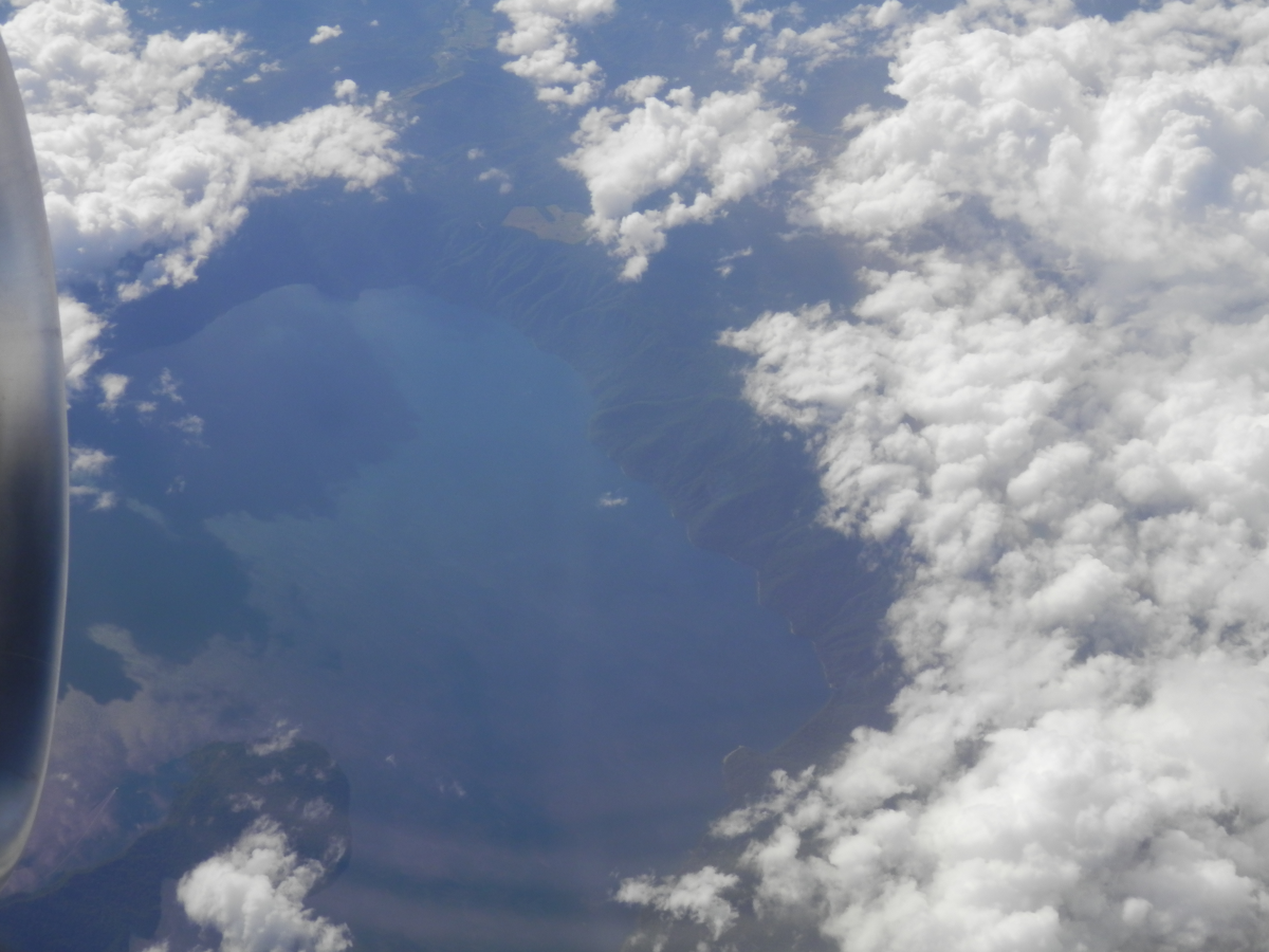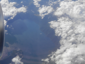 順調に飛行し、眼下には猪苗代湖が見えていた。(写真をクリックすると大きな画像で見られます。)