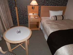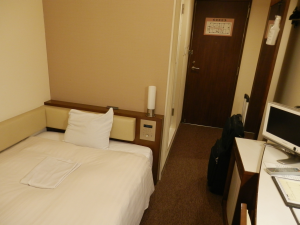 このホテルが宿泊料の割には過ごしやすいホテルだった。主なお客様は結婚式・披露宴のようなホームページの作りである。もう既に夜は遅いし、雨が降りそうな雲行きだし、駅からの道にはあまり店も無かったし、コンビニで買ってきたもので夜を過ごす。