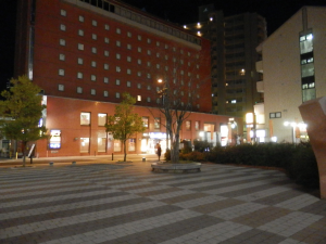 駅舎はイルミネーションで飾られている。街なかは雪が積もっていないが、東京近辺に比べたらかなり冷え込んでいる。ホテル向かいのコンビニで飲み物などを購入してからチェックイン。