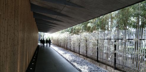 入口へのアクセスは外界と遮断するかのように、心を落ち着かせるような竹に囲まれた小道のような演出。