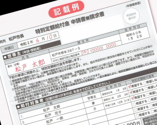 松戸市に在住の私に2020年04月20日に閣議決定された、特別定額給付金の申請書が06月01日に到着した。