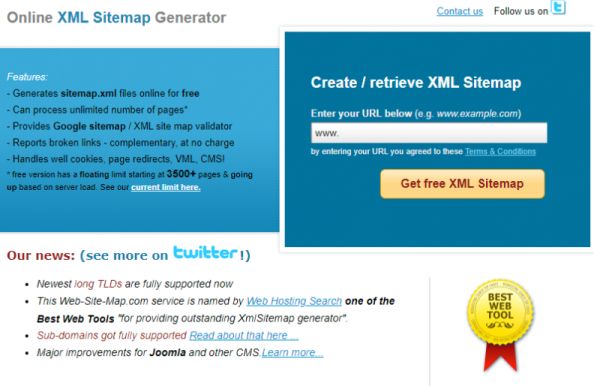 こちらはSitemap.xmlを作成してもらうURLを入力するだけで、メールIDを要求したりしない。読むと3,500程度のURLまで対応してくれているようだ。