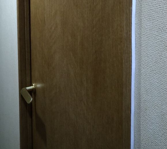 ドアの側を這わせたLANケーブルの貼付状態は次の写真。これもLANケーブルが目立つように写っているが、それ程でもない。