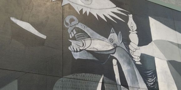 東京駅近くの丸の内オアゾにピカソのゲルニカの陶板の複製が飾られている。