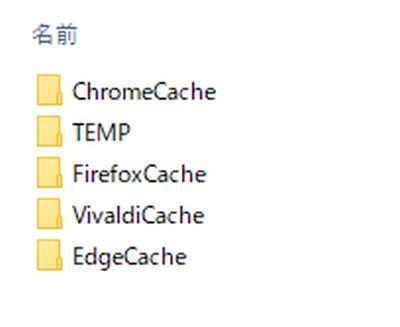 上図は、Chrome、Firefox、Vivaldi、Edgeを起動し、それぞれのキャッシュがRAMDisk上に作成された状態。再起動すれば削除されている状態になって、残っていない。
