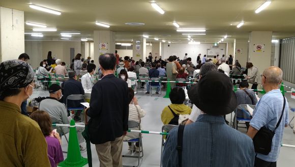 まずは並ぶ。少しずつ進んでいって、書類審査。体温を計測し、接種券、保険証、使用していればお薬手帳、今日の体調は?