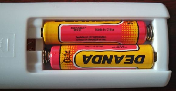 リモコンに電池が付属してくるが、「DEANDA」のロゴが付いている中華製。