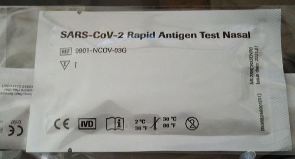 病院(クリニック)から陰性の連絡が来ているので、抗原検査キットで検査する必要性は無くなったが、開封して、どのようなものが届くのかを確認する。薄い袋に入ったキットと、使用方法のリーフレット。TVで見たことのある「一本線」「二本線」が表示されるプラスチックの板。30度以下のところに保管しておけば後でも使えるようなので、保管しておく。