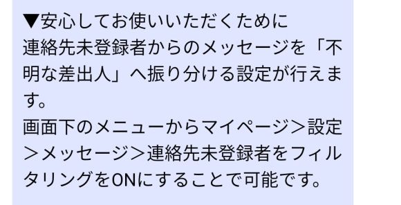 「安心してお使いいただくために連絡先未登録者からのメッセージを「不明な差出人」へ振り分ける設定が行えます。
