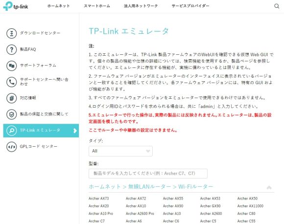 TP-Link エミュレータ
