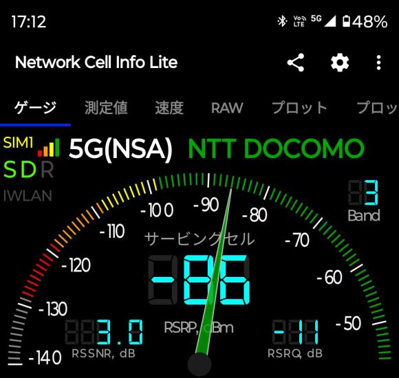 IIJにて5GオプションをONにした後、ドコモショップの近くでないと5Gは入らないかなと松戸駅近辺で確認したらNSAではあるが5Gの電波を捕まえて、アンテナピクトにも「5G」が表示された。