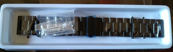 アナログ腕時計をしていた頃には「三つ折れプッシュ式」のバックルを使用していて、使い慣れているので、そのようなバックルにしたいと思いAmazonを調べて、価格の安いステンレス製で「三つ折れプッシュ式」のベルトを選択。
