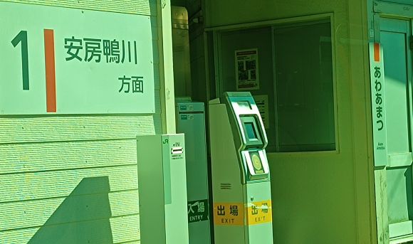 さあ、目的地の「安房鴨川」に到着。地図を見ると西口にイオンがあるので、東口・西口どちらにも出られると思っていた。私の見落としのような気もするが、改札口を目指し、簡易SUICA改札機を通って周りを見たら、東口だった。目指すは西口なので跨線橋を渡って西口へ出た。今JRの構内図を確認するとホームから西口へは出られないようだ。