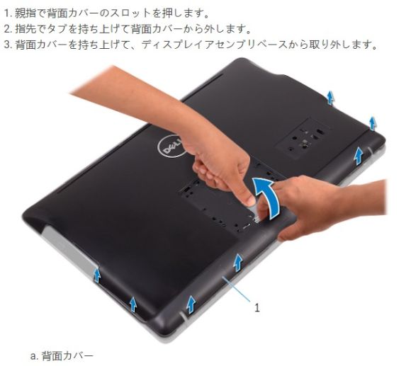 PCは一体型デスクトップで、ケースはメモリーやHDDの部分が開く構造ではなく、裏蓋全面を外さなければならない。DELLは「とことん効率化」を目指していると思っていたが、爪でパチンとはめるタイプ。