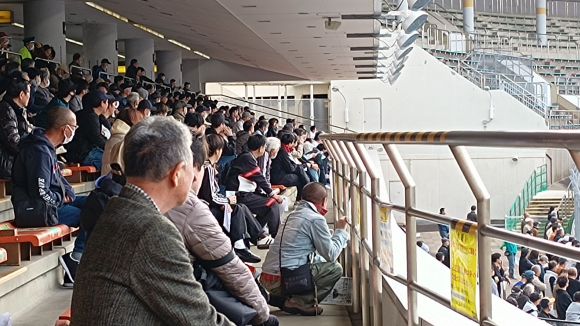 お客さんとしては、ほとんどが男性で、休日だからか少ないが家族連れも見られた。「特別観覧席」や「ロイヤルルーム」に人影は見られないが、無料の一般席には大勢の人が集まっていた。