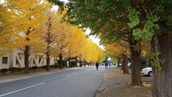 車両が走るからか、構内の道は広めに作られているなと感じた。黄葉の季節でもあり綺麗に色づいていた。構内が広いせいもあるだろうが、お客さんが多い感じがしない。