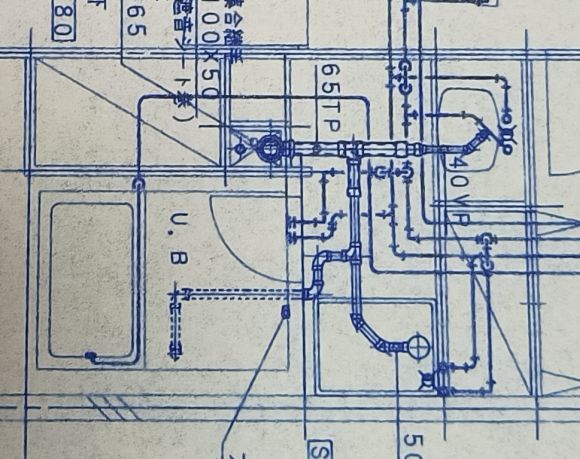 翌日、マンションの今年の理事長に管理人室を開けてもらい保管資料を探したら、配管図などが見つかったので、休日明けに出向いてくれた作業員に配管図を見てもらい、スマホで撮影し、左右逆転しているので、それで次の調査場所を確認してもらう。