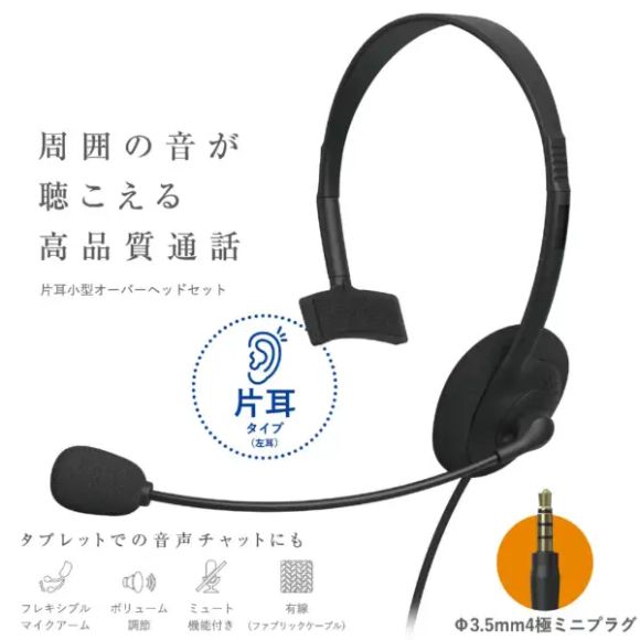 購入後に失敗に気付くことも考慮に入れて、選択したのは「ELECOM HS-HP14MTBK」で片耳タイプ。